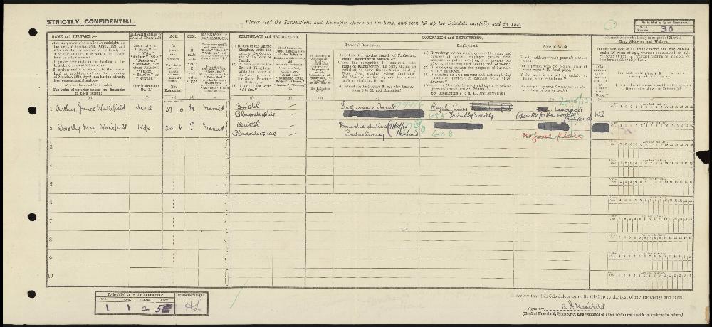 1939 Register: Arthur J Wakefield, 29 September 1939, National Archives.