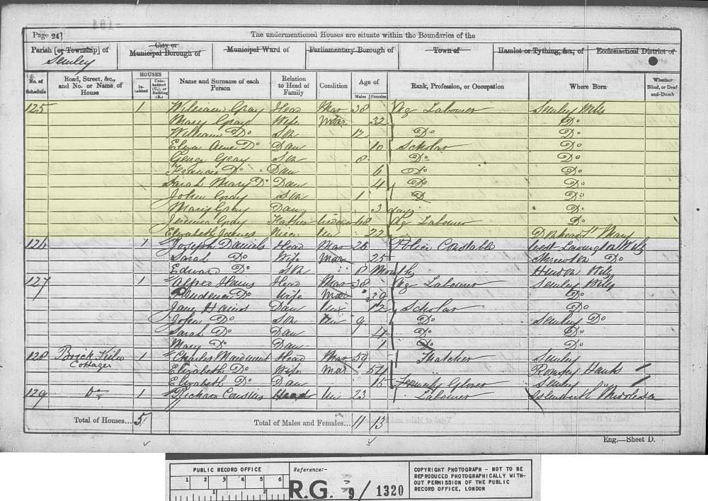 1861 England, Wales & Scotland census, Huglers Hole, Semley, Wiltshire, RG9/1320, Folio 104, Page 24, Schedule 125, head of household: William Gray, National Archives.