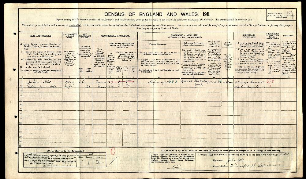 1911 England, Wales & Scotland census, 16 Durnford Street, East Stonehouse, Devon, RG14/13009, head of household: John Old, National Archives.