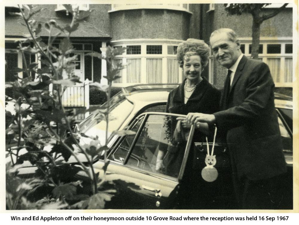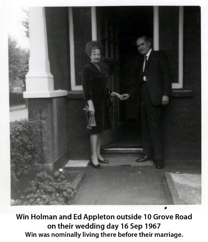 Although the marriage certificate gives Win's address as 10, Grove Road, Thornton Heath which was her sister Dorie's house she had actually lived around the corner from Ed who was living at 71 The Glade, Shirley in 1967, but may have sold her house in anticipation of her forthcoming marriage. The fact that they had lived near each other accounts for the fact that they met on the train to London where they both worked in the city. After they married they lived at 71 The Glade until they moved to Whyteleafe in March 1968 when they sold the house to Pat & Don.