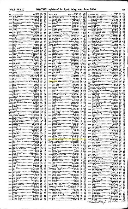 Son: William Henry Benjamin Wakefield, Q2 1880