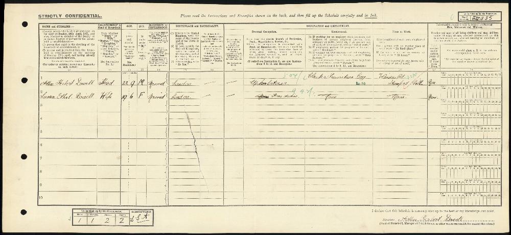 1921 England, Wales & Scotland census, Winder Road. Hornford Hill, Shoreditch, London, RG15/01375, Schedule 335, head of household: Arthur Herbert Dowell, London Metropolitan Archives.
