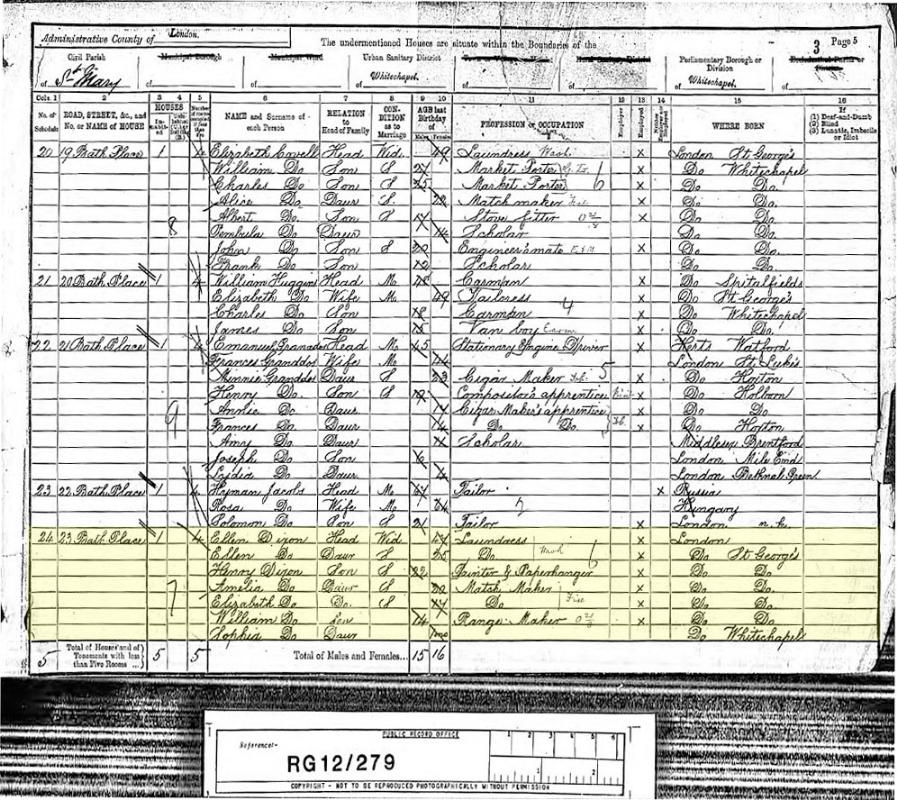 1891, 1891 Census for Household of Ellen Dixon in Whitechapel, London