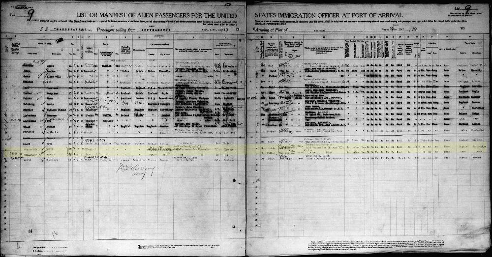 Passenger List: Maude Wakefield, 18 September 1920, United States National Archives.