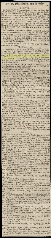 Announcement in Newcastle Guardian and Tyne Mercury, Page 8, Newcastle and surrounding area, 9 August 1862.