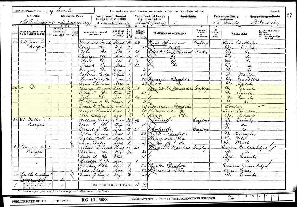 1901 United Kingdom census, 10 St James Terrace, Bargate, Great Grimsby, Lincolnshire, head of household: George Brown.