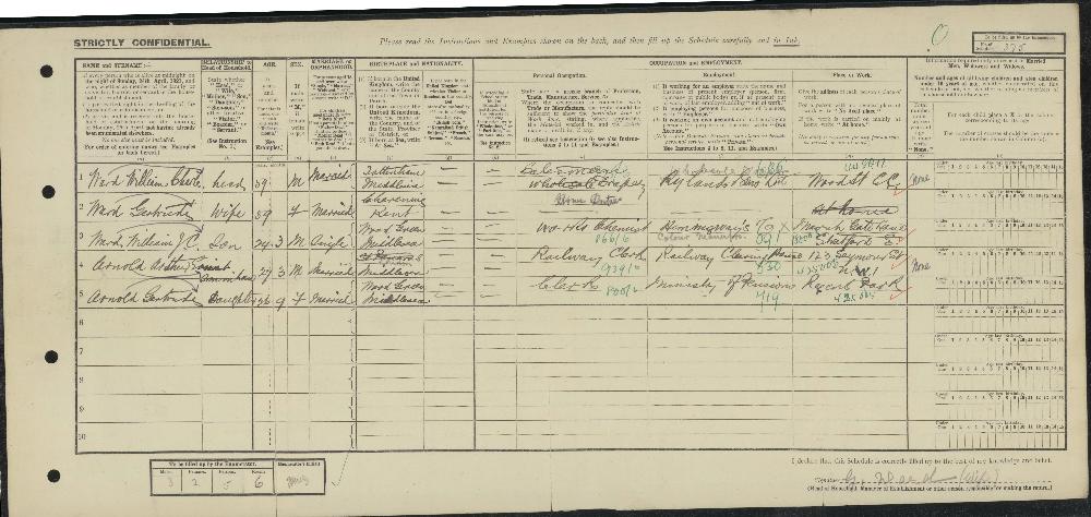 The household consisted of William, his wife Gertrude, their son William (age 24), their son-in-law Arthur Arnold and their daughter Gertrude who was Arthur's wife. They had the house which had six rooms to themselves.
