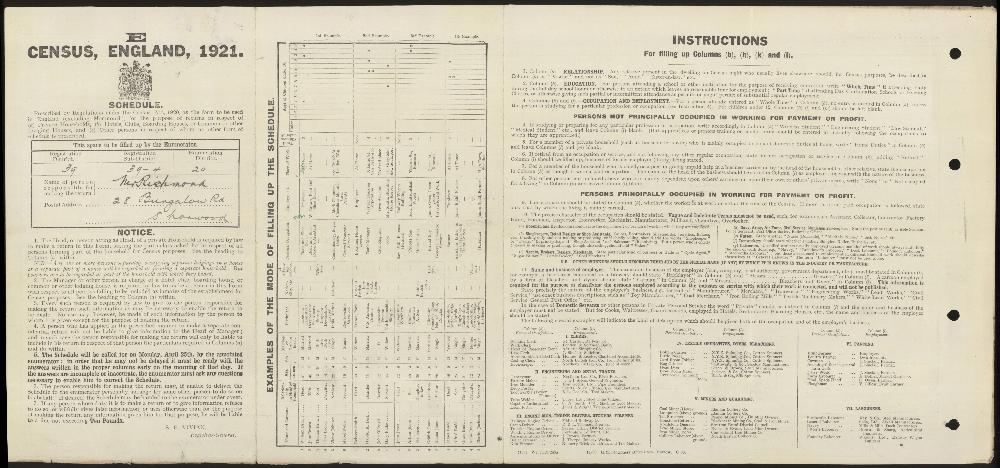1921 England, Wales & Scotland census, 28 Bungalow Road, South Norwood, Surrey, RG15/03496, Schedule 84, head of household: Horace Richmond, National Archives.