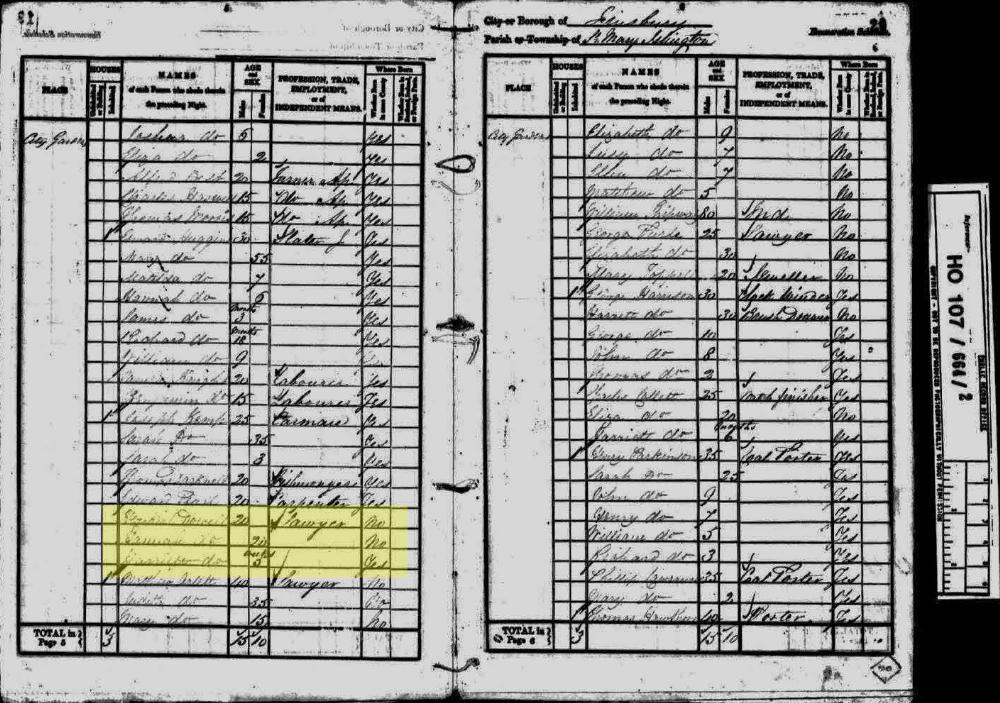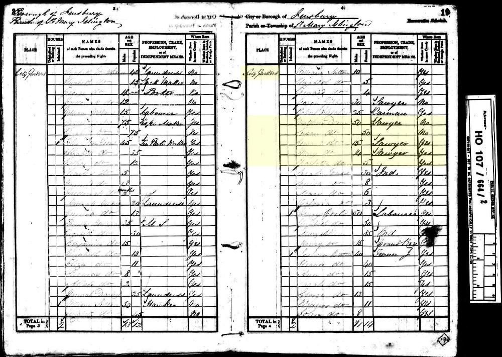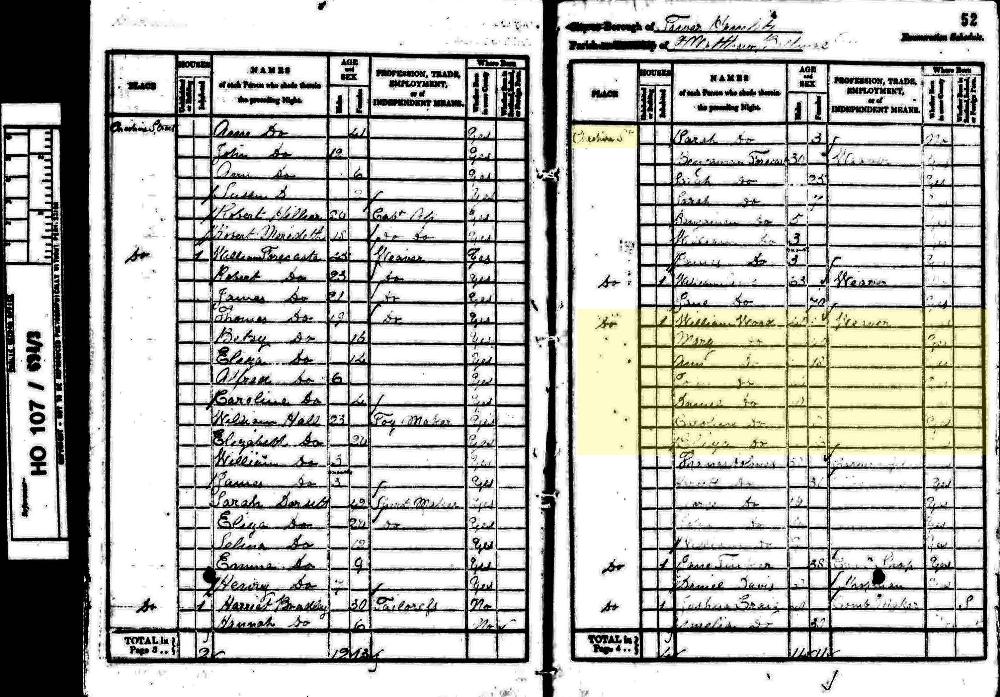 1841 Census for Household of William Wood in Bethnal Green, Middlesex , (FMP website). Custom Id: HO107/694, Book 3, Folio 52, Page 4; National Archives.