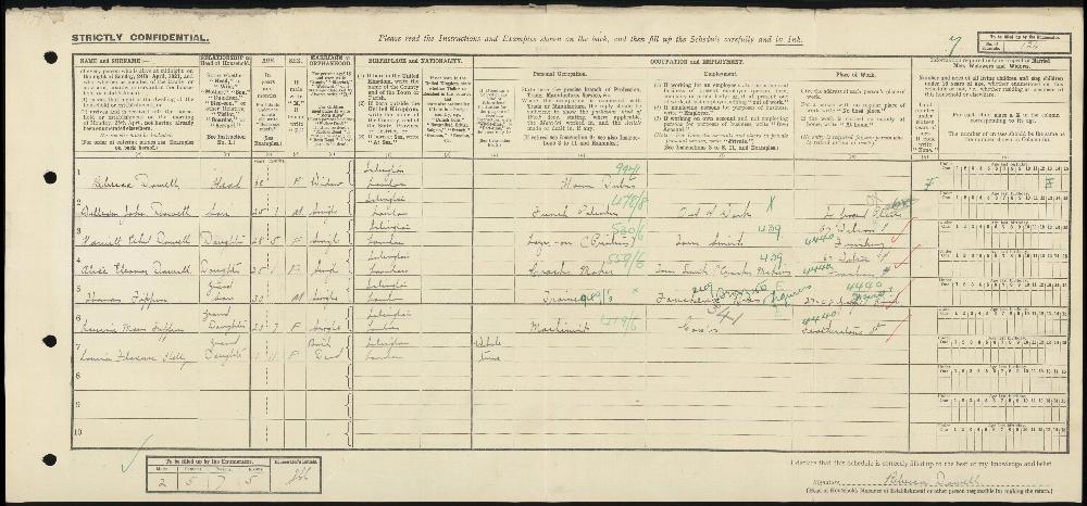 The household of Edward and Caroline Lauderdale was recorded in the 1939 Register taken on 29 Sep 1939 in London, S.W.8 living at 8 Allen Edwards Road. The household consisted of Horace and his wife Alice, Alice's brother William and her adopted sister Louise Fippen. Just before the register was compiled 3 other members of the household – William and Harriet Mackellow, and Jack Richmond (Harriet was Alice's sister and Jack was her son) moved to Brighton to live with William’s brother and his wife (Harry & Francis Mackellow) as part of the voluntary evacuation from London.120
