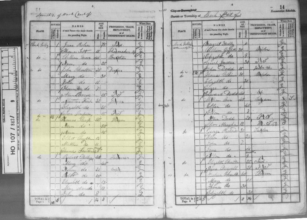 Census 1841 Census for Household of Abram Thornton in Whitechapel, Middlesex, (Ancestry.co.uk). Custom Id: HO107/710 Book1, Folio 15, Page 22; William Thornton age 24 born in the County (Middlesex). National Archives. Call Number: HO107/710/1.