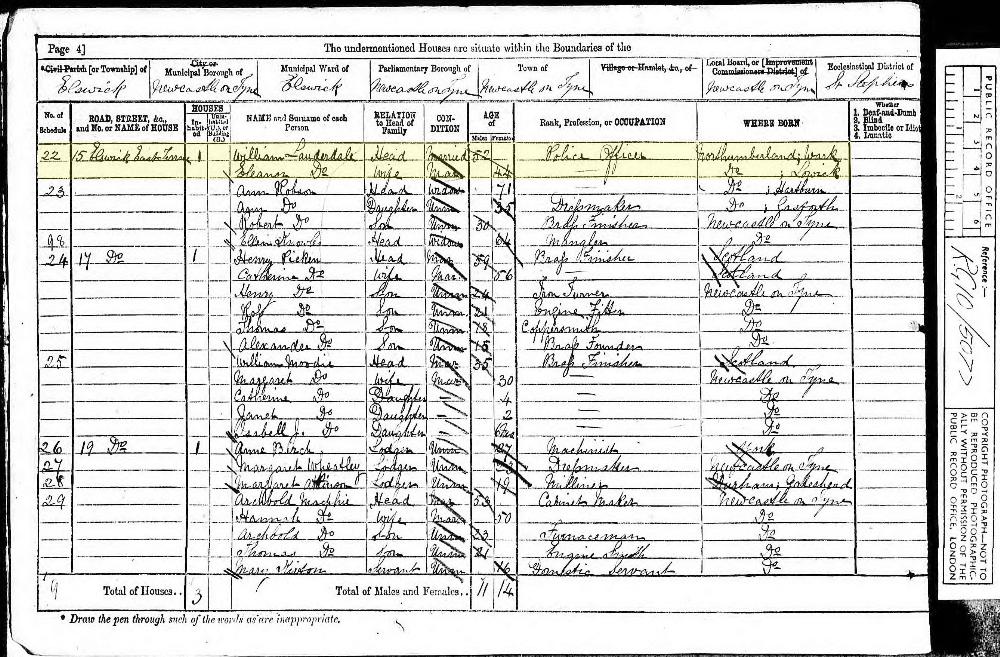 Edward Maitland Lauderdale [8], Maggie Maitland Lauderdale [21] and Alice Maitland Lauderdale [23] were executors for estate of Mary Jane Brown [20]. The estate was worth £13,765 14s. 11d. which was a considerable sum at that time. At the time of her death she was living in a 10 roomed house.73